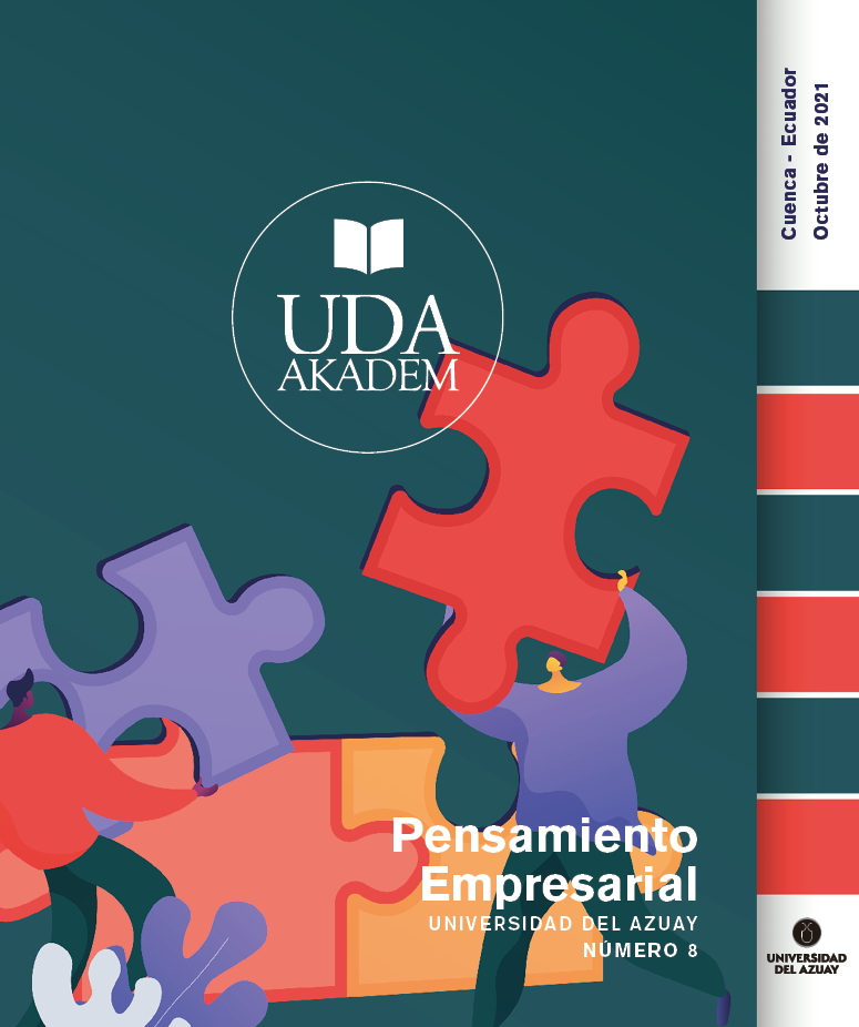 No. 8 (2021)UDA AKADEM, la revista de la Universidad del Azuay, presenta su octava edición. En su contenido están temáticas como: marketing relacional, benchmarking, redes sociales, compras on-line, entre otros relacionados con el desarrollo del marketing. También, artículos basados en la medición de la desigualdad, contribución de las empresas al desarrollo social, la responsabilidad social empresarial y universitaria, satisfacción laboral, factores de riesgos psicosociales, modelo de innovación para Pymes y demás, que abarcan el ámbito socioeconómico.